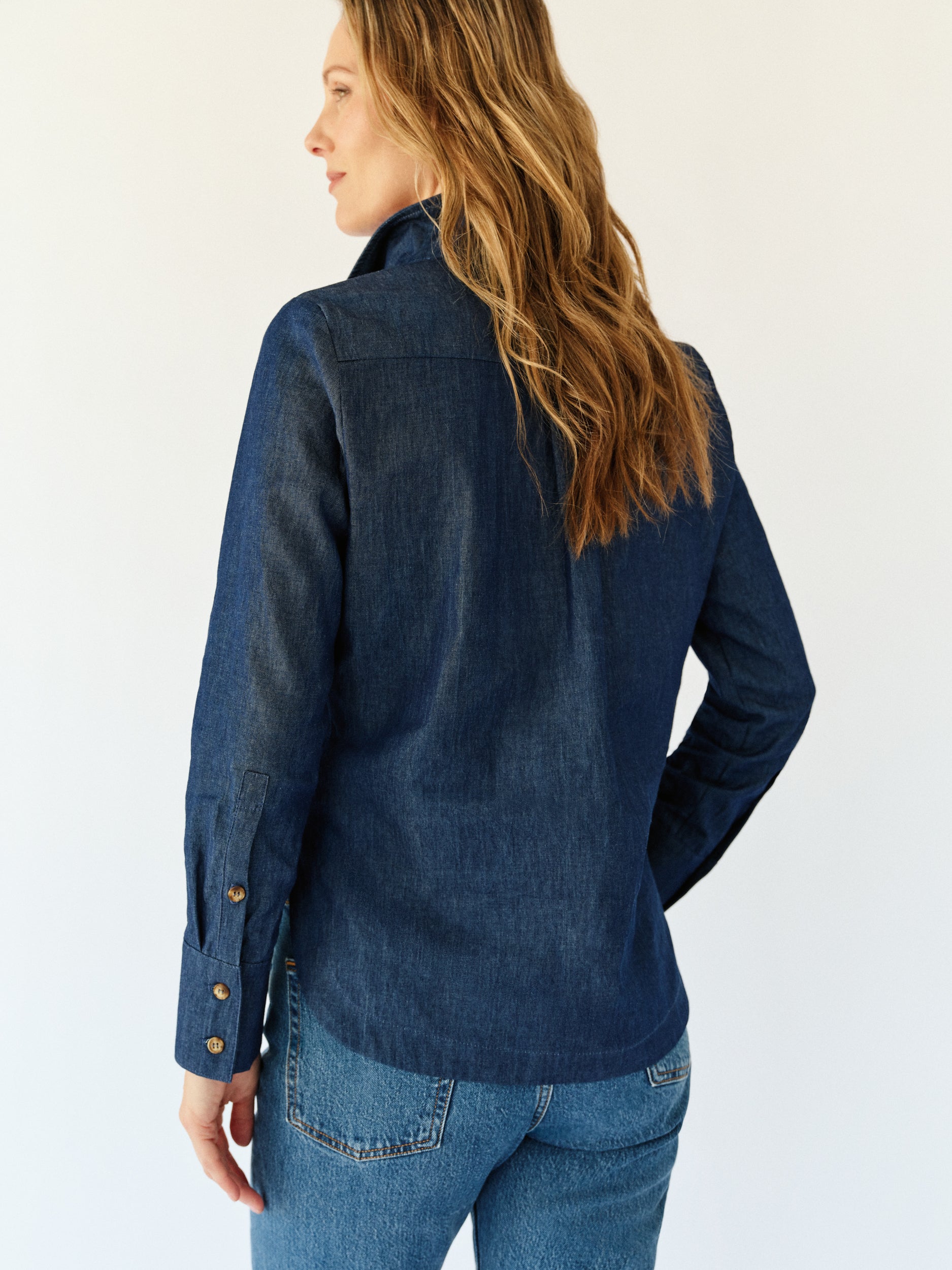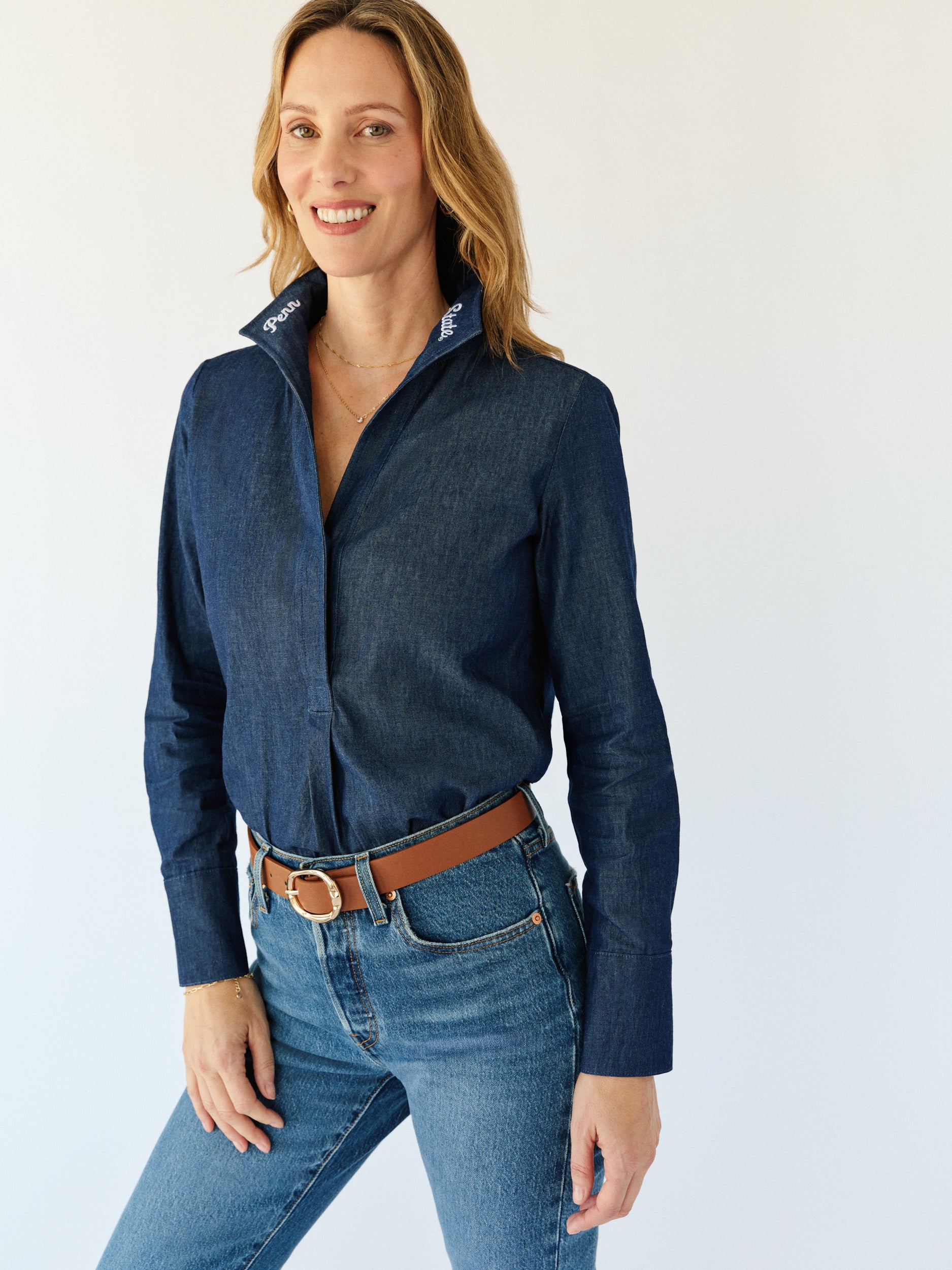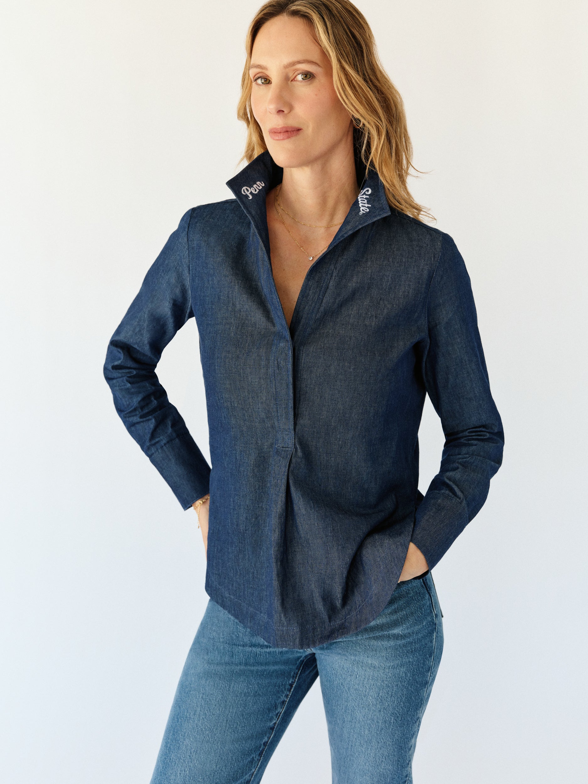 The Popped Collar Blouse in Chambray