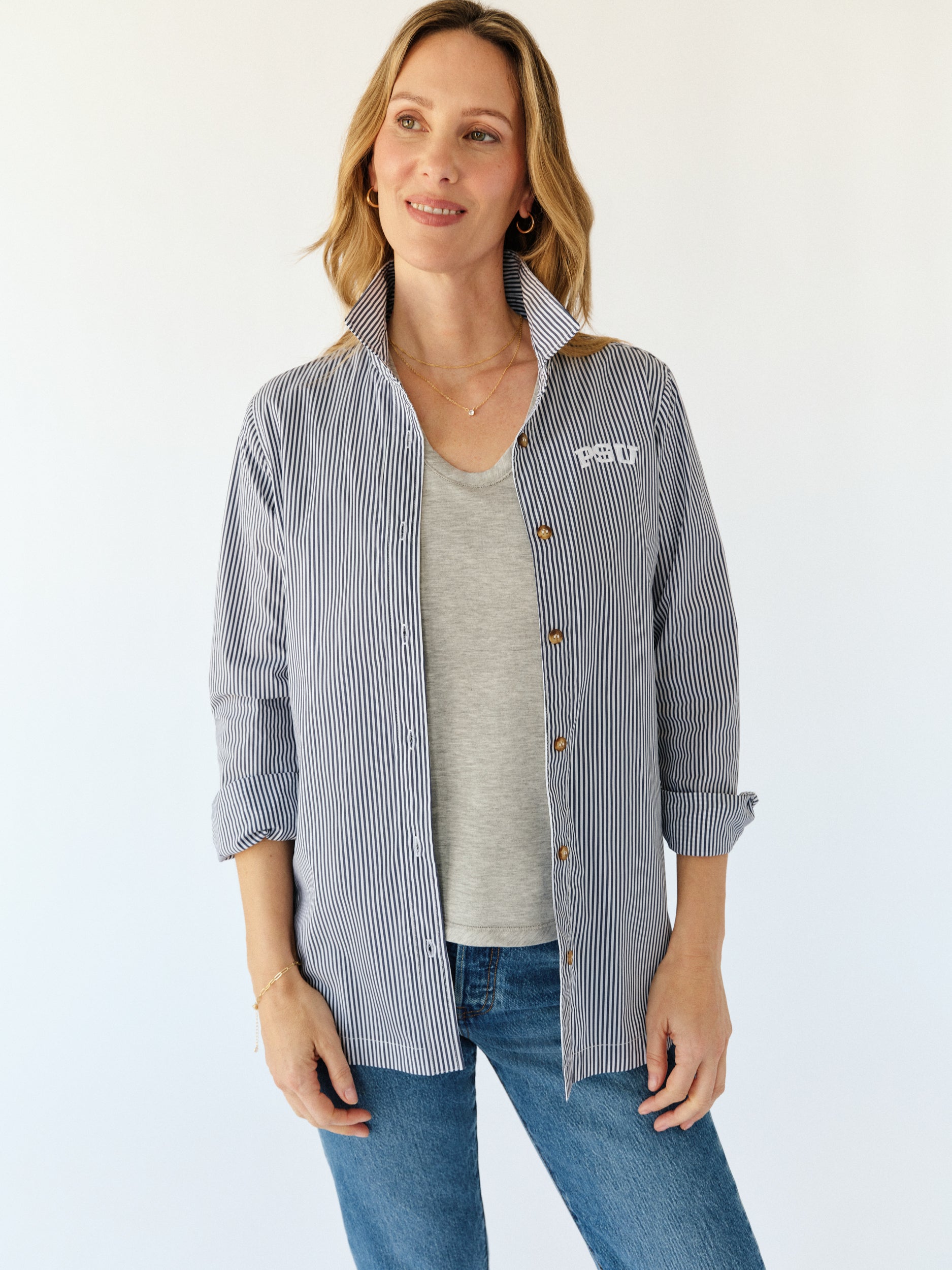The Long Button Up in Stripe