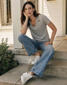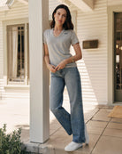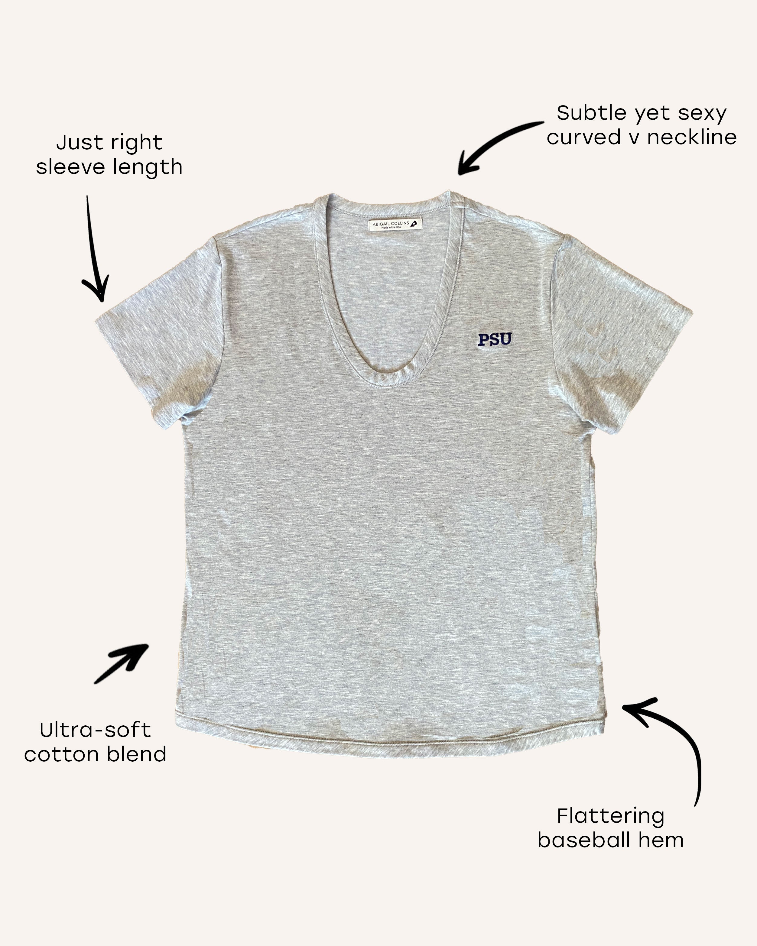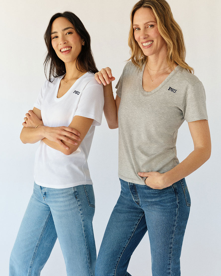 Meticulously designed to ensure the perfect balance between sexy and cool, our curved V-neck is sure to flatter all body types. Made of a super-soft cotton blend, with a touch of stretch that hugs in all the right places. This classic tee looks great on its own or layered under your favorite shacket.
