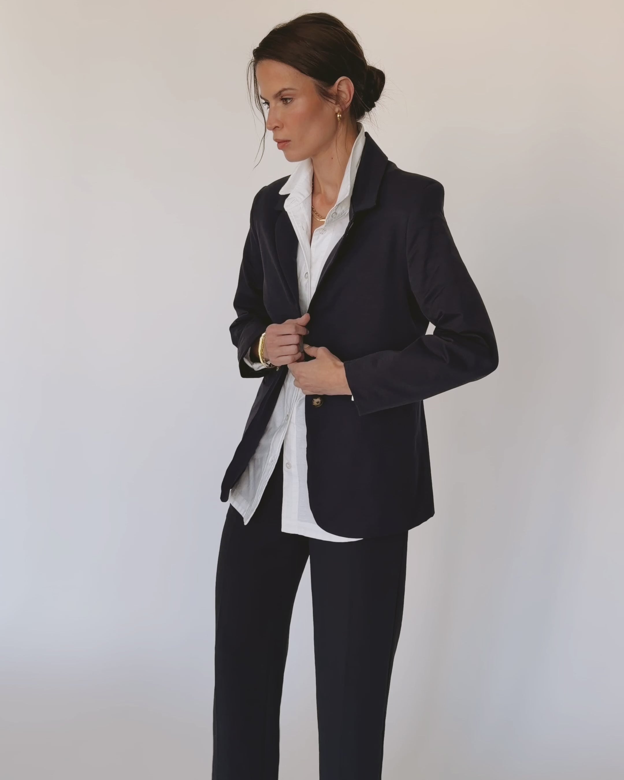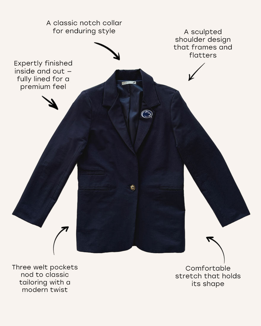 With a classic notched collar, single-button closure, and three welt pockets, this blazer is sharp and put-together from every angle. Structured shoulders bring authority, while the stretch fabric moves with you—because power dressing should never mean compromising comfort. From brunch to the boardroom, its versatility makes it a true wardrobe essential.