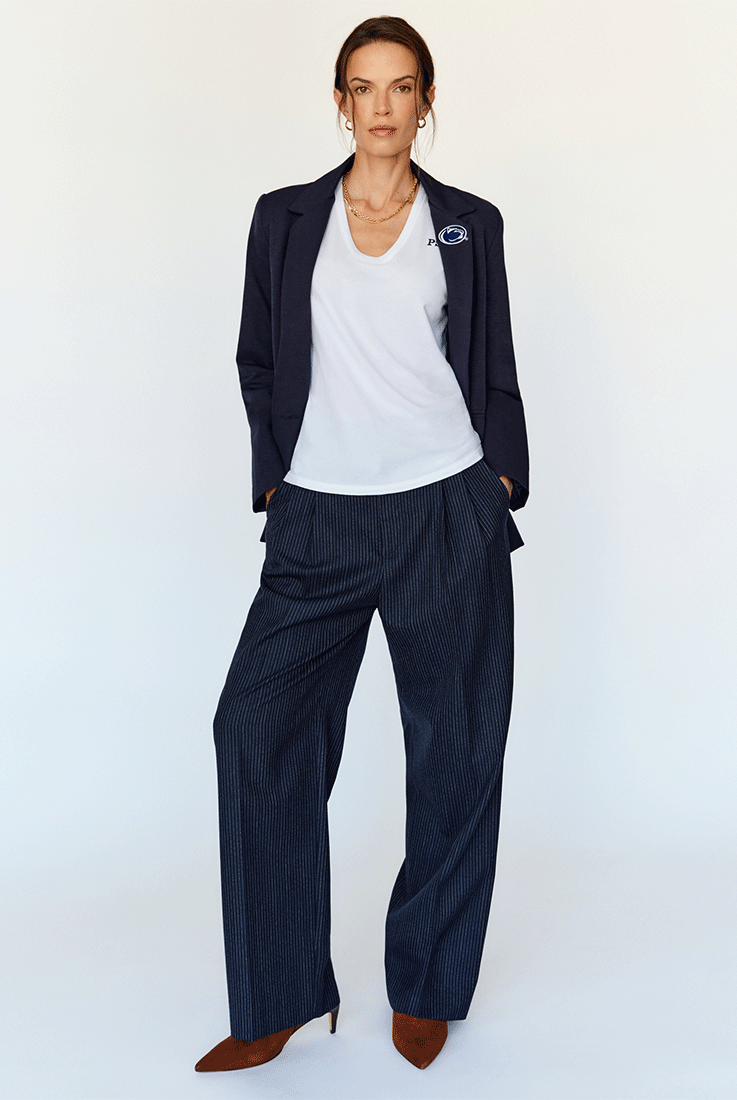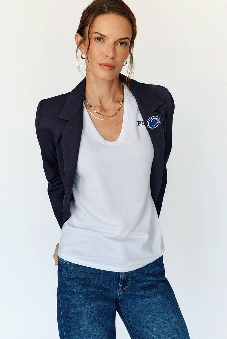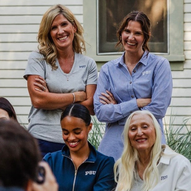 I am a proud Penn State graduate and for years I searched for collegiate clothing that felt polished and flattering. All I could find were cheaply made boxy graphic tees, hoodies, and crop tops - and let’s be honest, at 46, crop tops just aren’t in the rotation anymore, even though I wish I could pull one off! So, since I love solving problems, and clothing is definitely something I have plenty of experience buying, I felt, with Abby’s help, we could create something truly special, pieces that every alumna would be proud to wear.