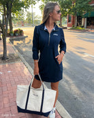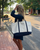 Whether you’re tailgate-bound or just tackling your to-do list, this classic tote is built to keep up. Crafted from sturdy 18 oz canvas with a top zip closure, this carryall is equal parts durable and dependable. A contrasting handle adds a little polish, while the roomy interior fits everything from snacks and sweatshirts to grocery hauls and game-day gear.